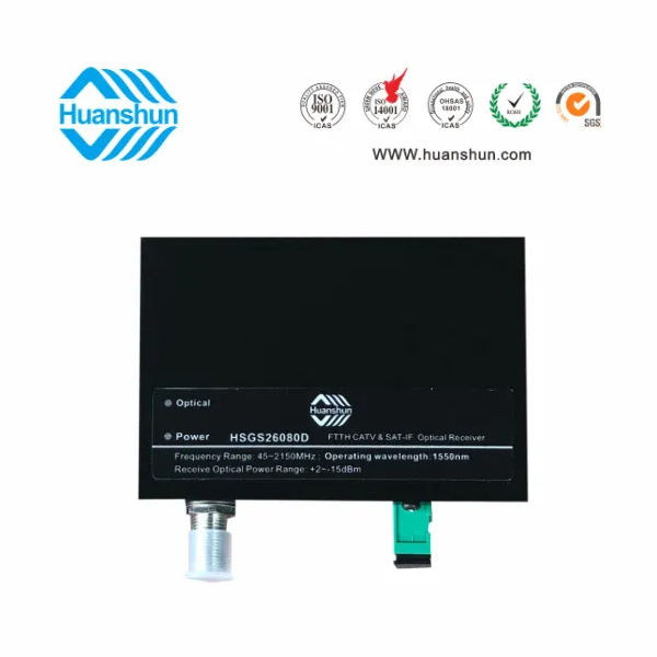 濾波型CATV&SAT-IF光接收機(jī) | HSGS26080D | RF工作帶寬45~2150MHz,光工作波長1540~1565nm,光接收功率-8~0dBm/RF CATV80dBuv,SAT-IF65-75dBuv,RF接口F型公制或英制(訂貨時(shí)說明),光輸入接口SC/APC |